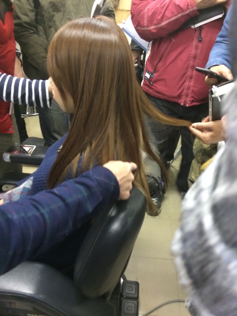 まずはモデルさんの髪を触診