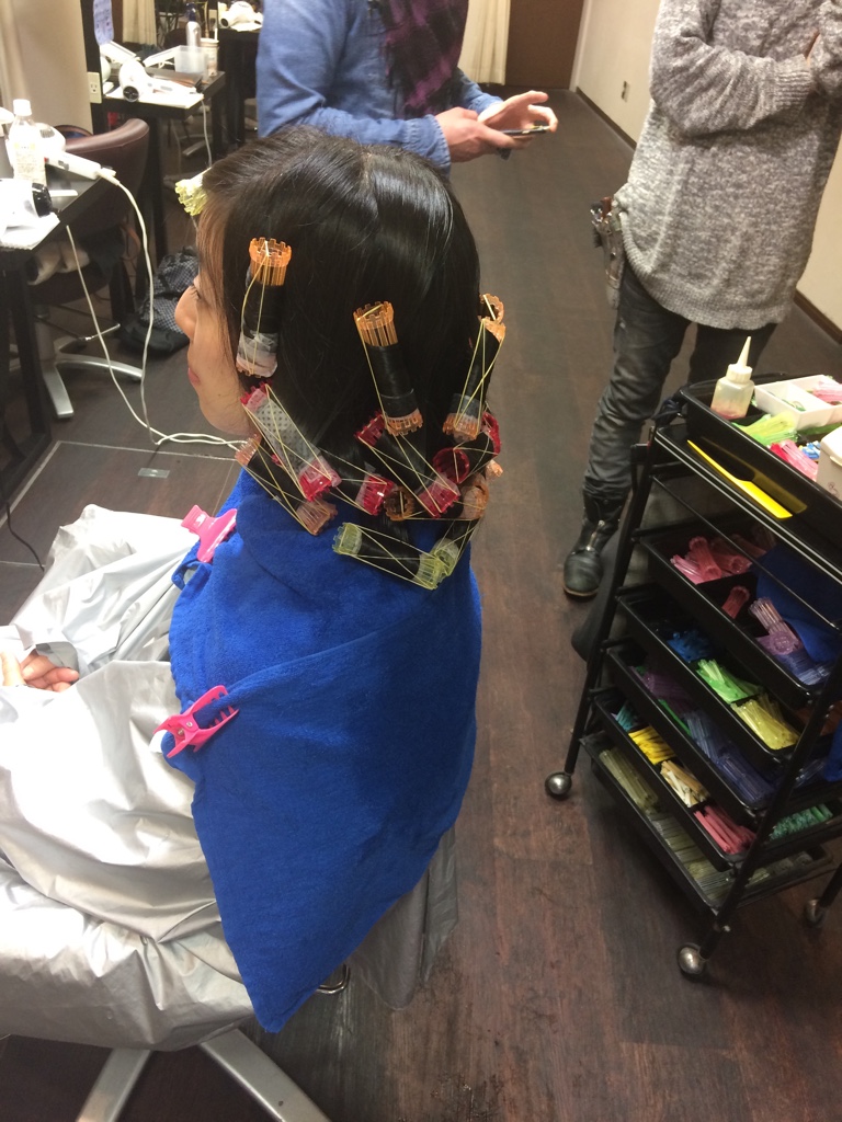 モデルさんでのパーマ展示見つつウィッグ切って