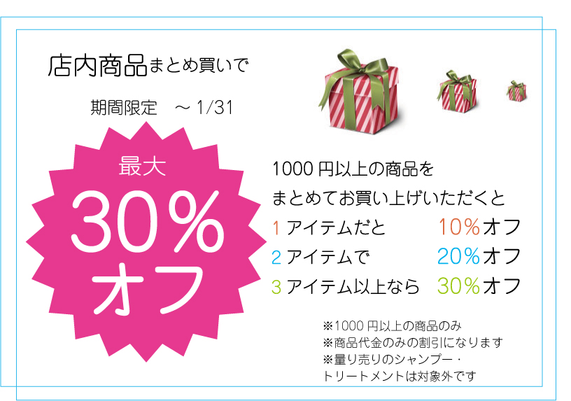 3アイテム以上 30%オフ